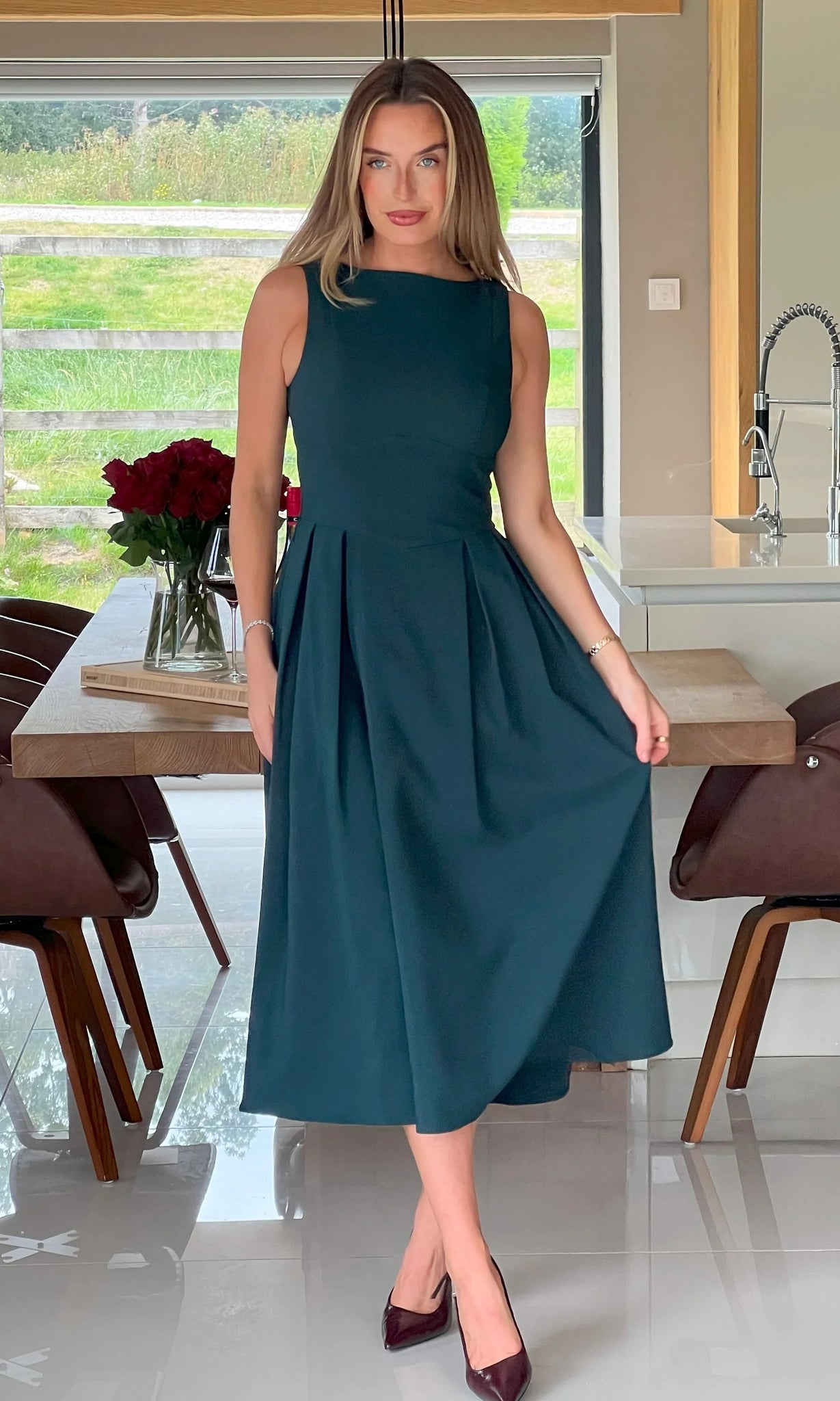 The model wears a UK 8 and is 5'6".