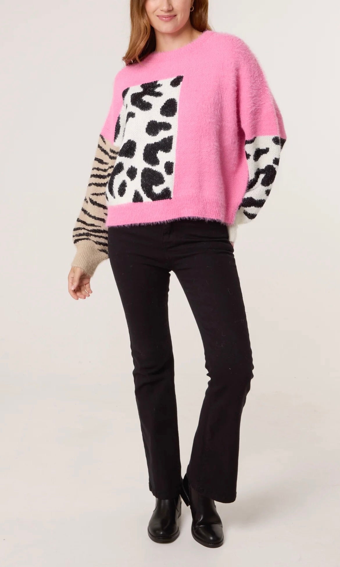 PINK LEOPARD AND ZEBRA ABSTRACT JUMPER