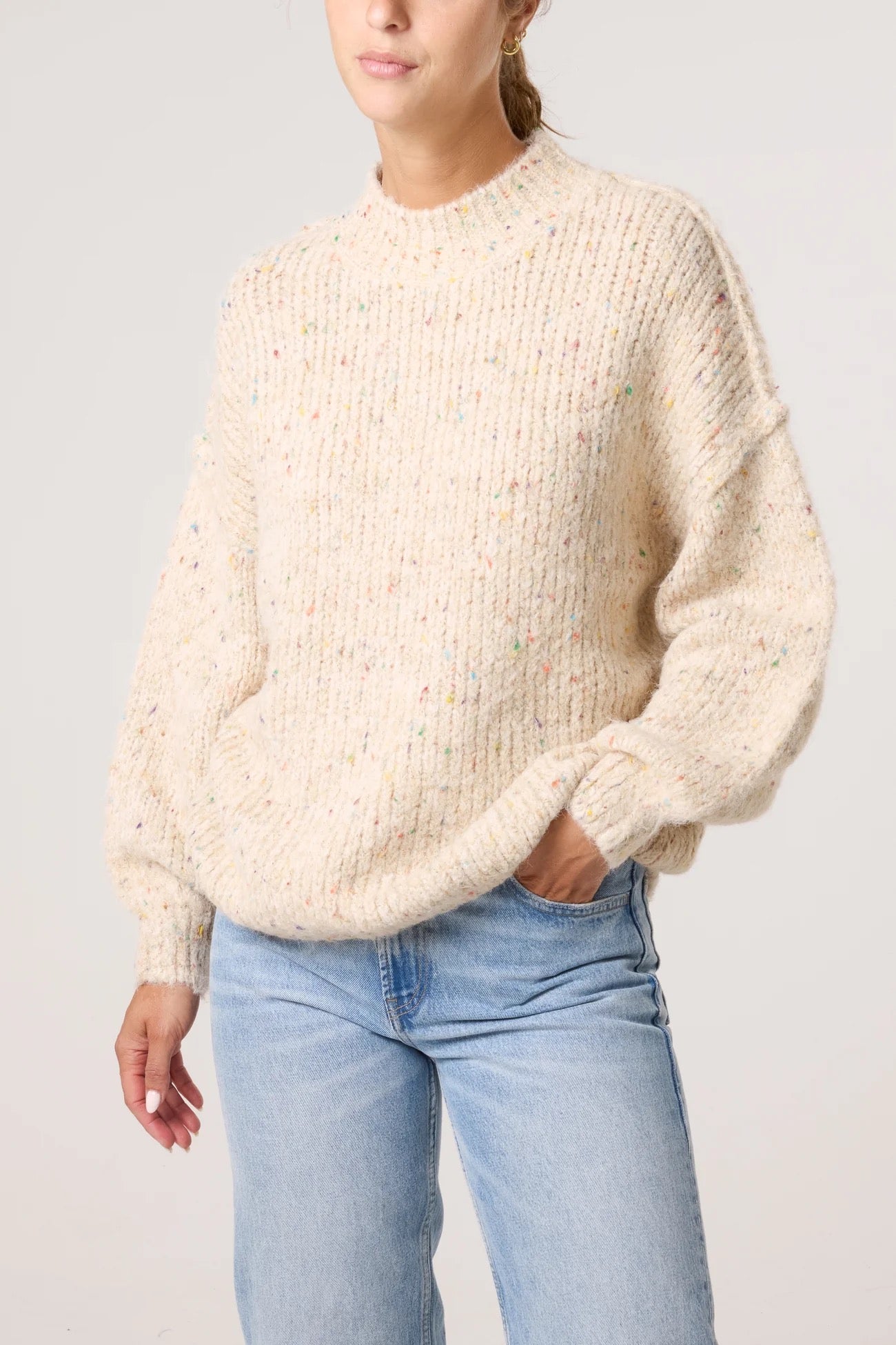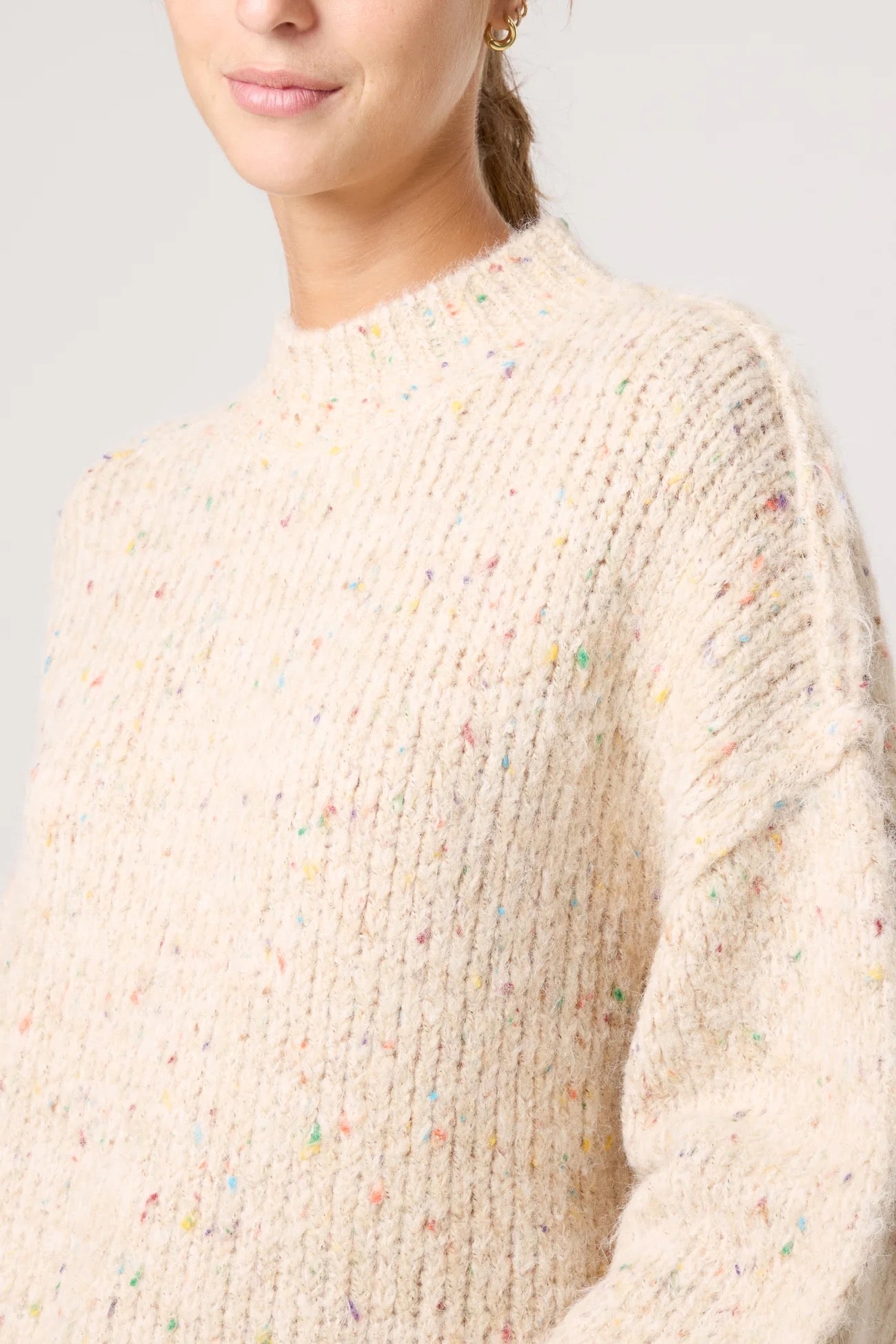 CREAM SPACE DYE CREW HIGH NECK KNIT JUMPER