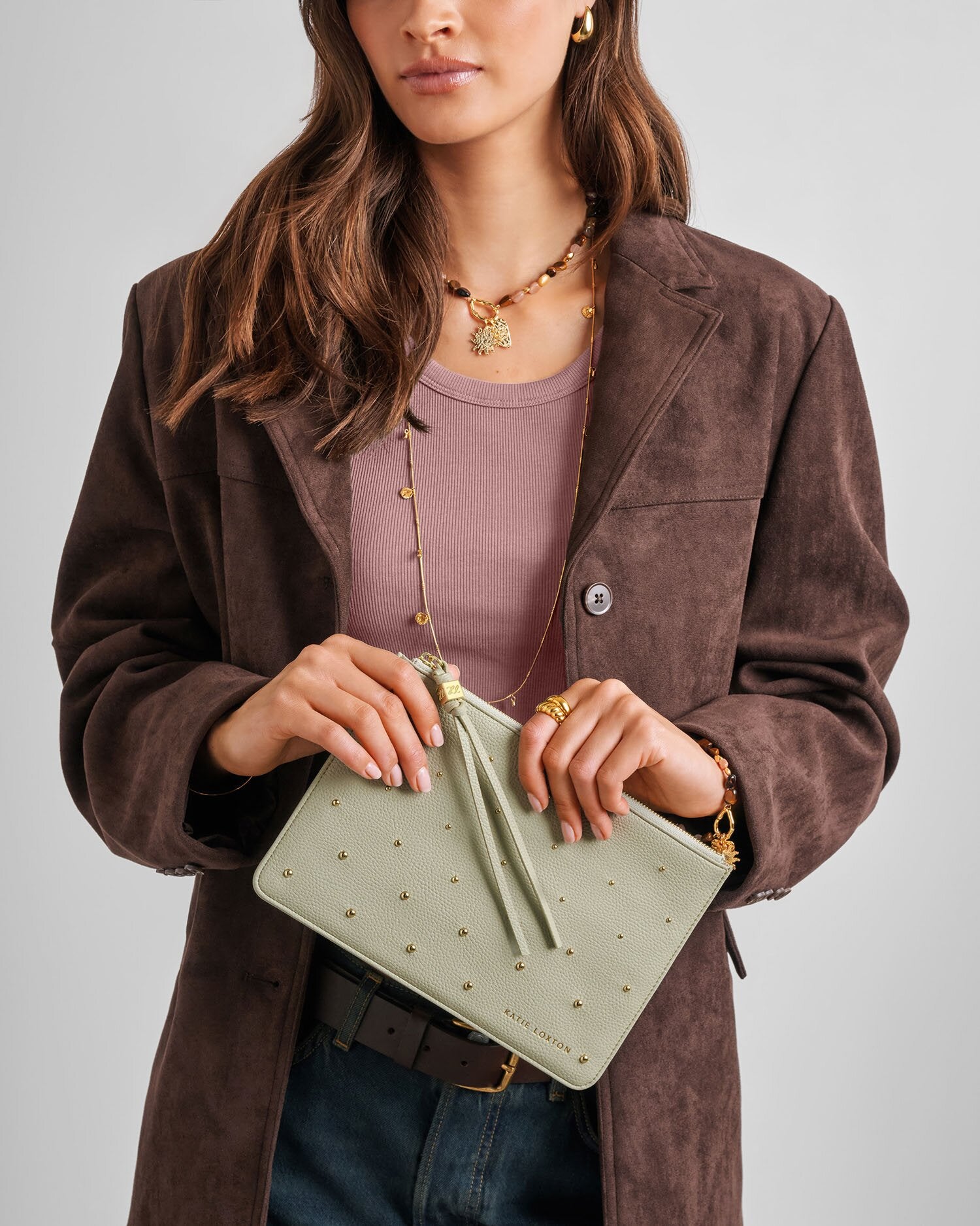 Green Mist Tassel Studded Charm Pouch