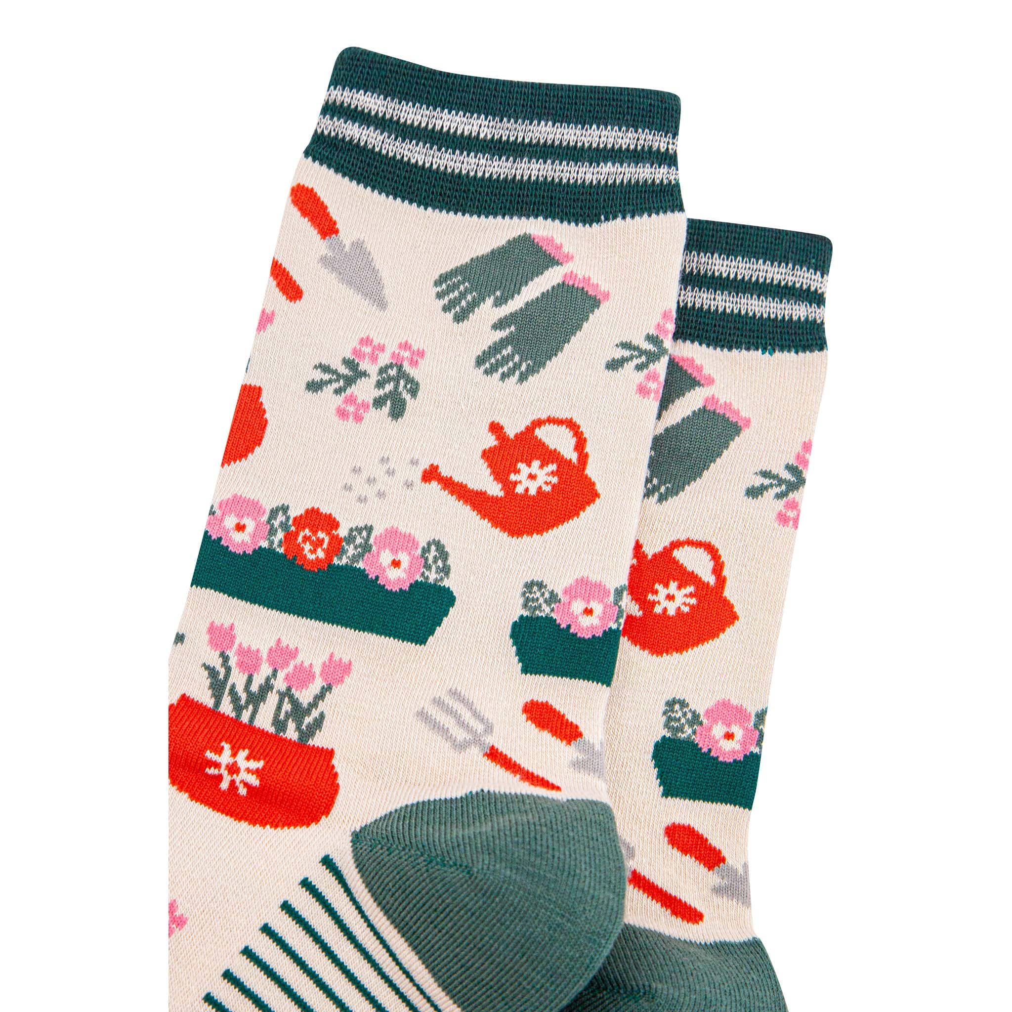 Women's Bamboo Socks - Cream/Green, Gardening: UK 3-7 | EU 36-40 | US 5-9