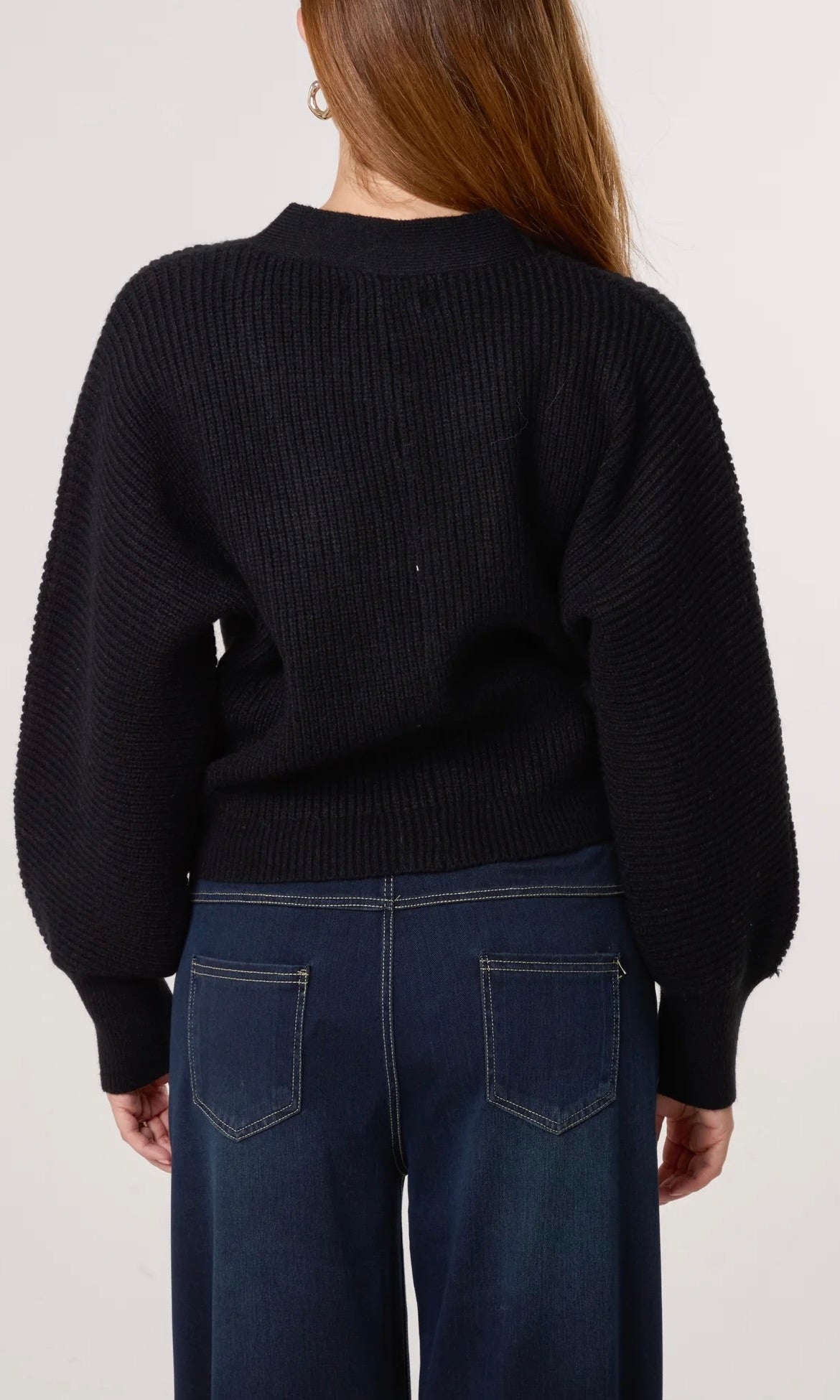 BLACK CHUNKY GOLD BUTTON CARDIGAN