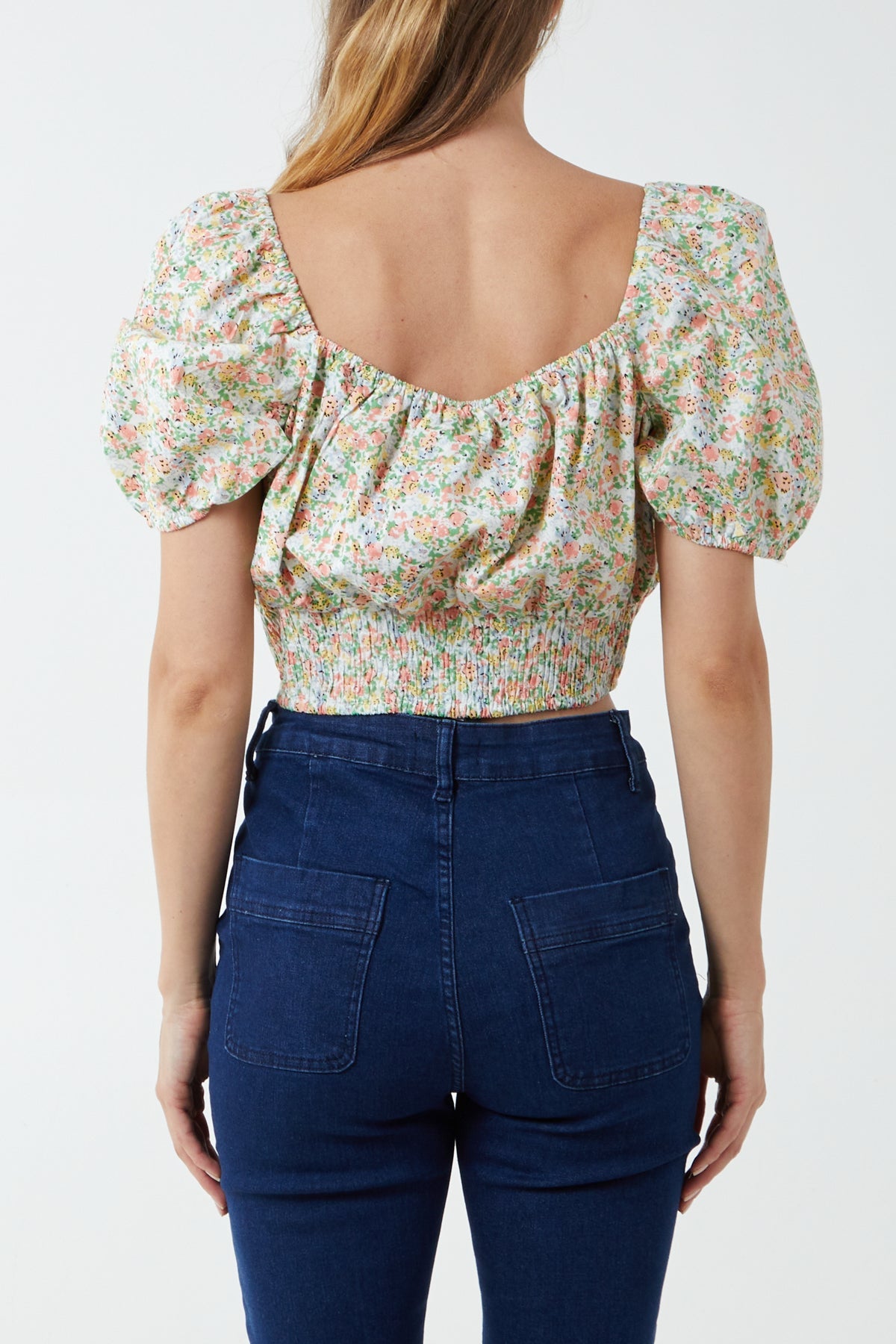 Floral Shirred Waist Milkmaid Crop Top