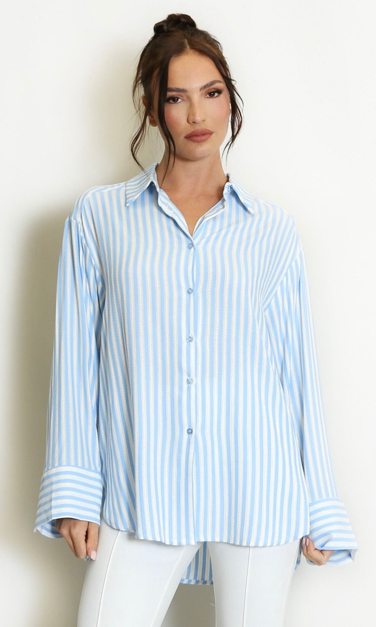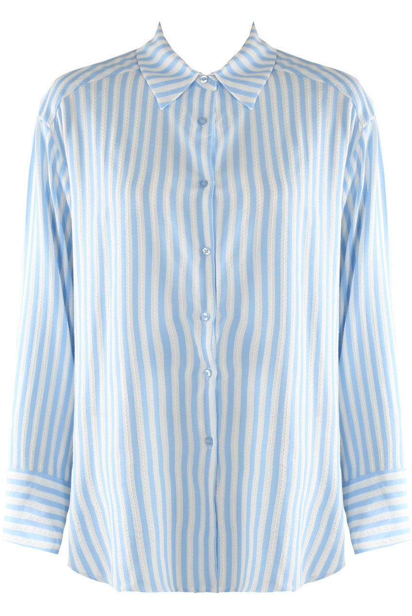 Blue Cotton Blend Striped Shirt