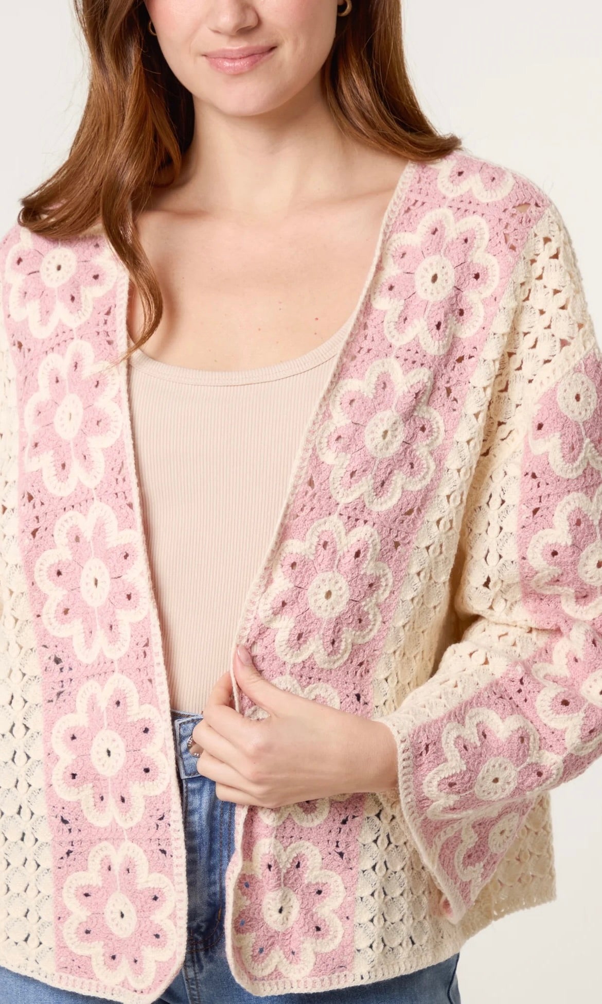 Pink Floral Crochet Cardigan