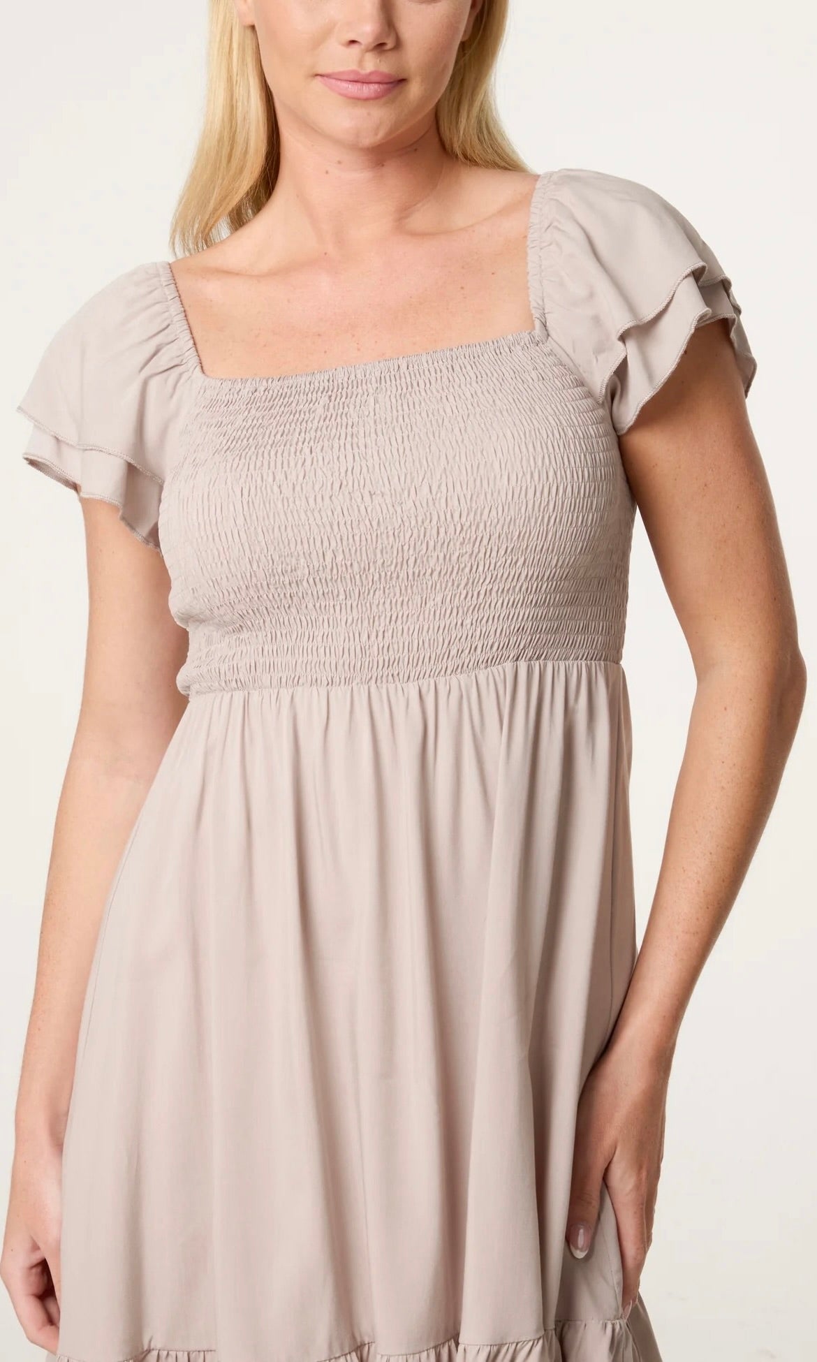 Stone Shirred Smock Dress