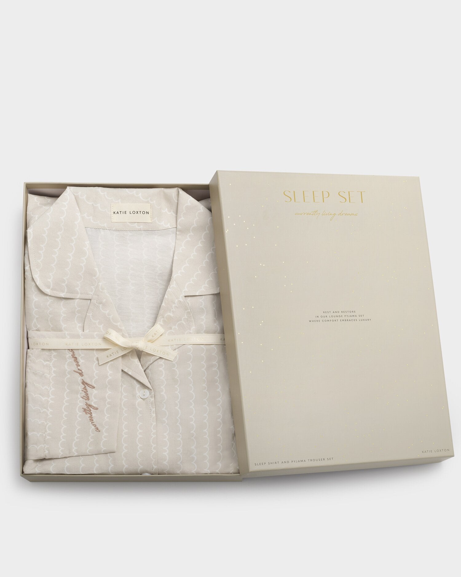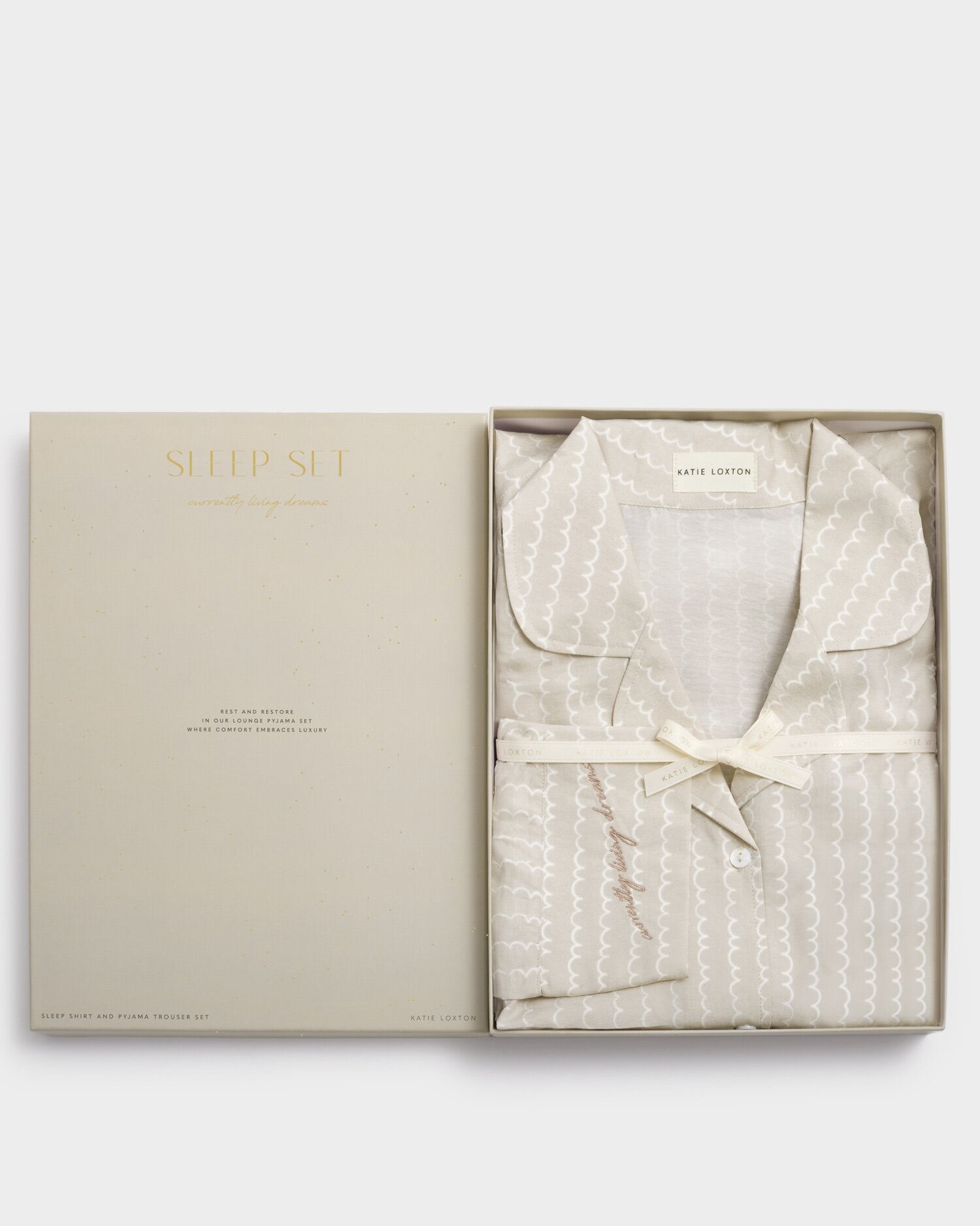 Wave Print Pyjama Gift Set in Taupe